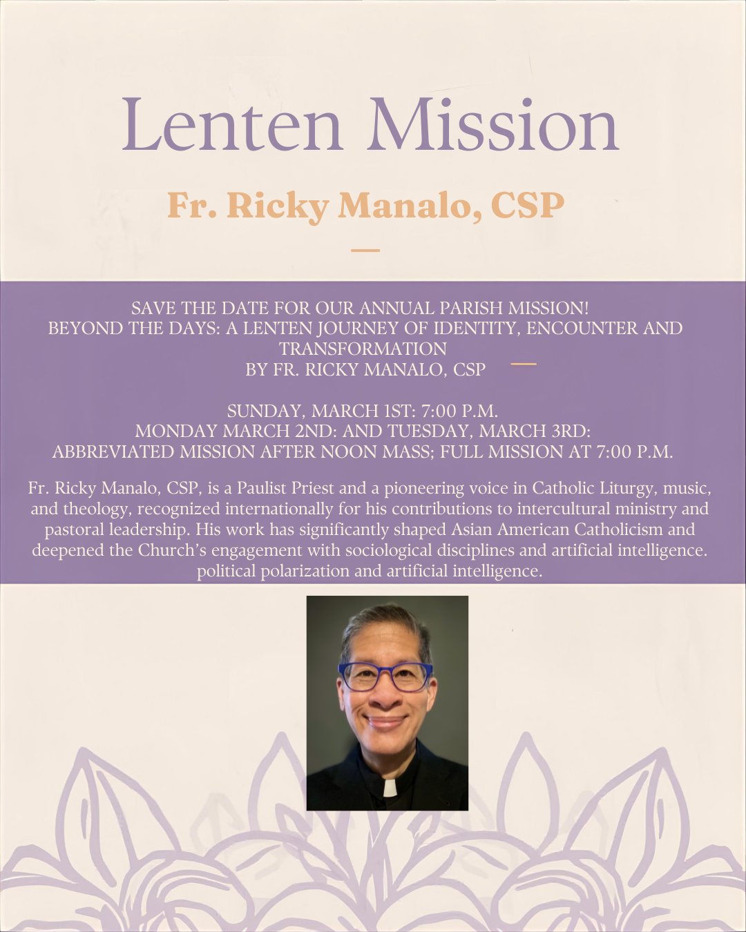 2026 Lenten Mission with fr. ricky manalo, csp
