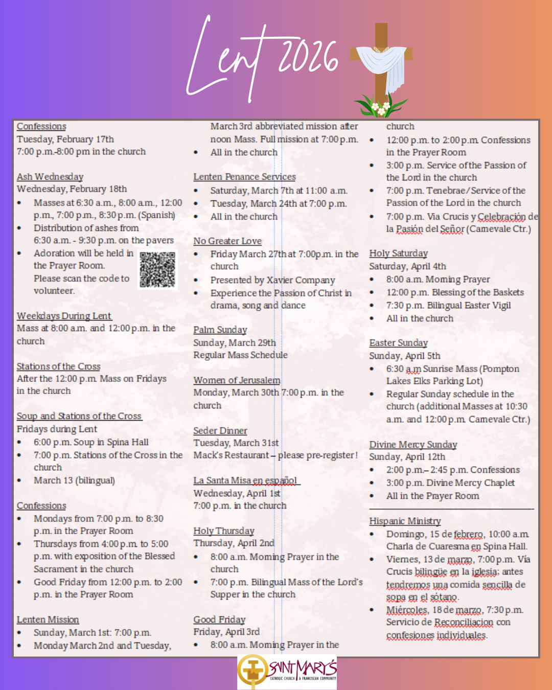 Lenten Schedule 2026