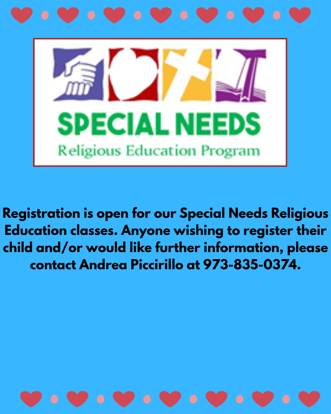 The Special Needs Ministry provides recreation, education, and preparation for Reconciliaton, First Eucharist and Confirmation for individuals with Special Needs.